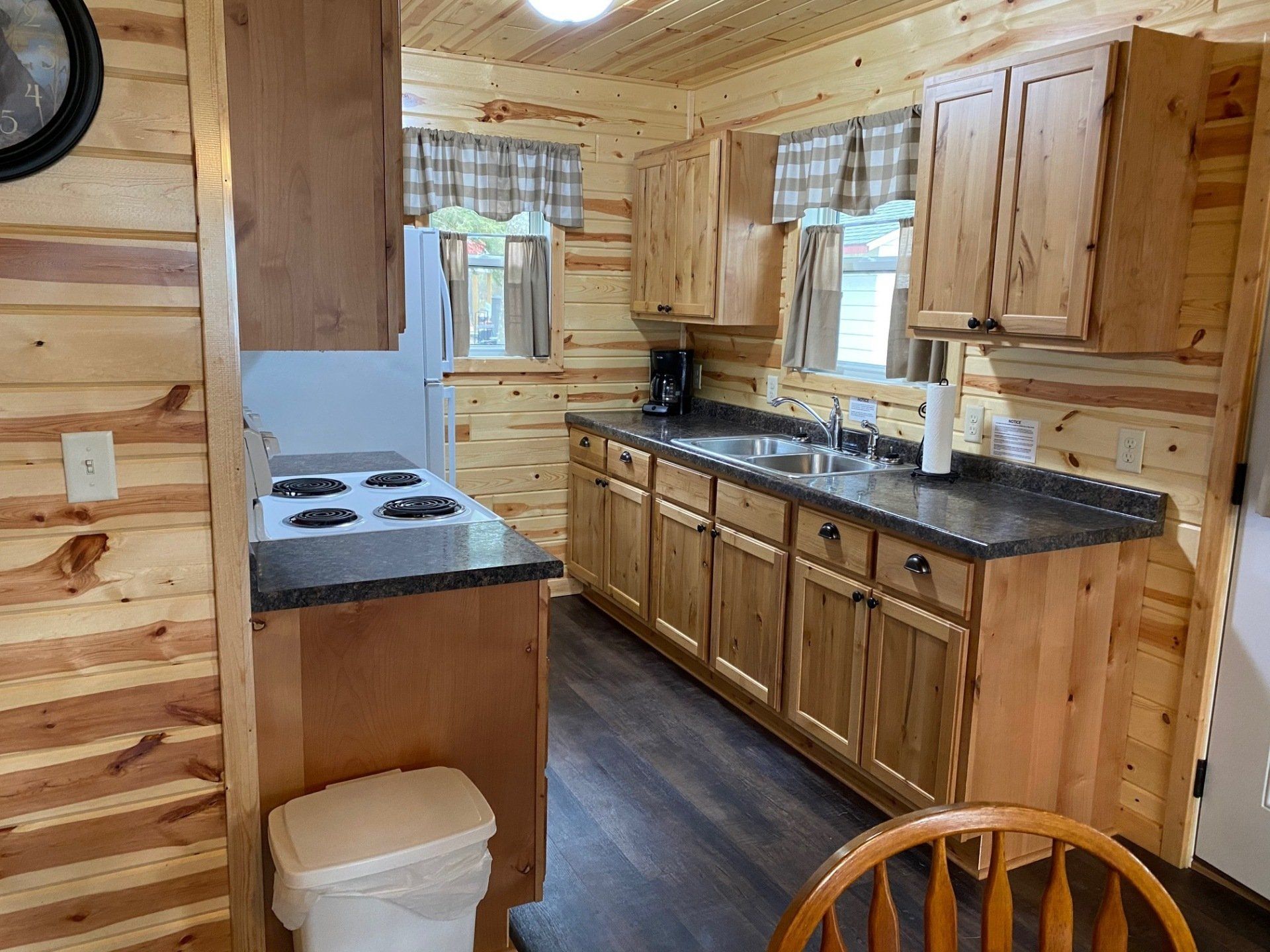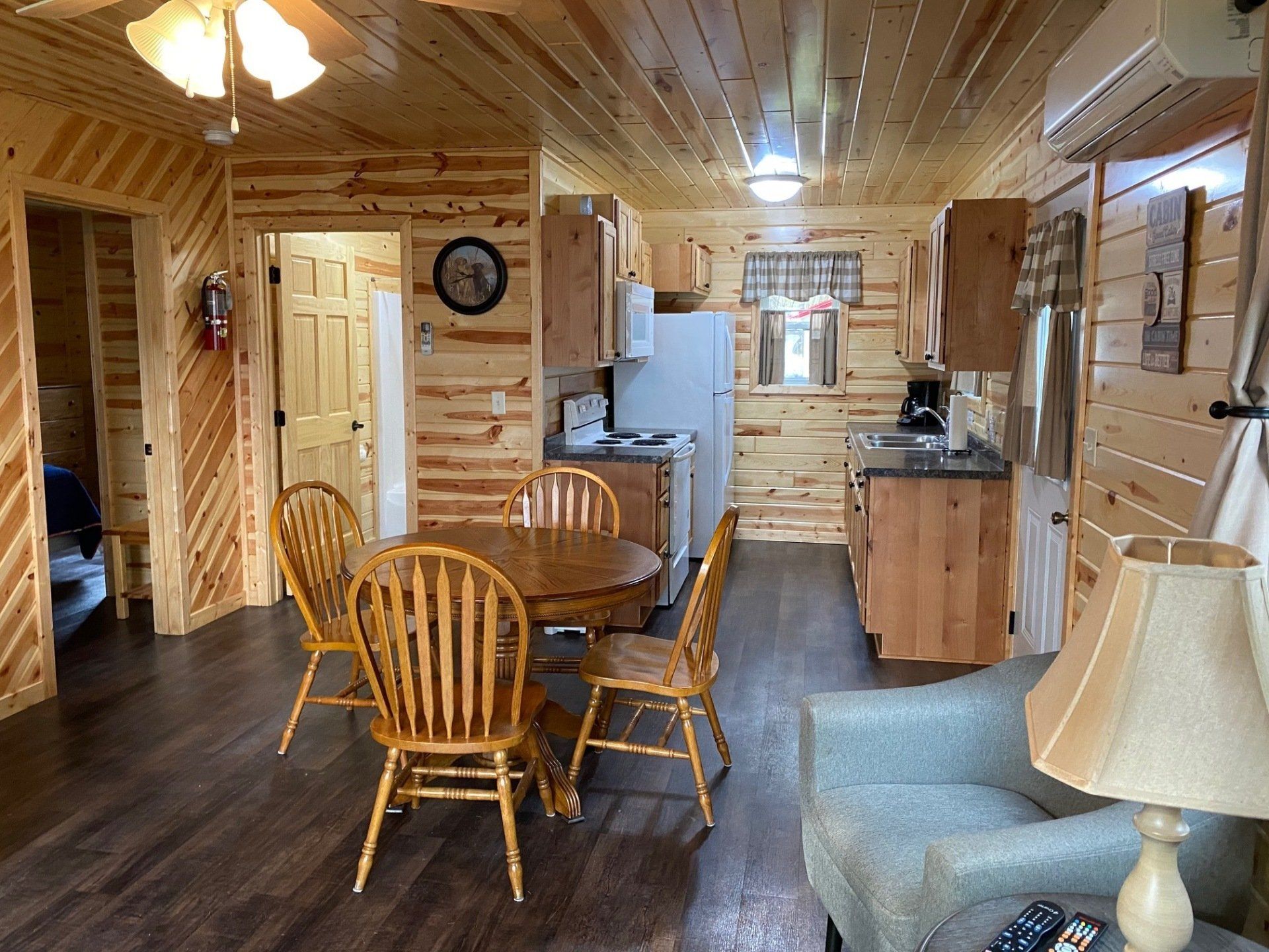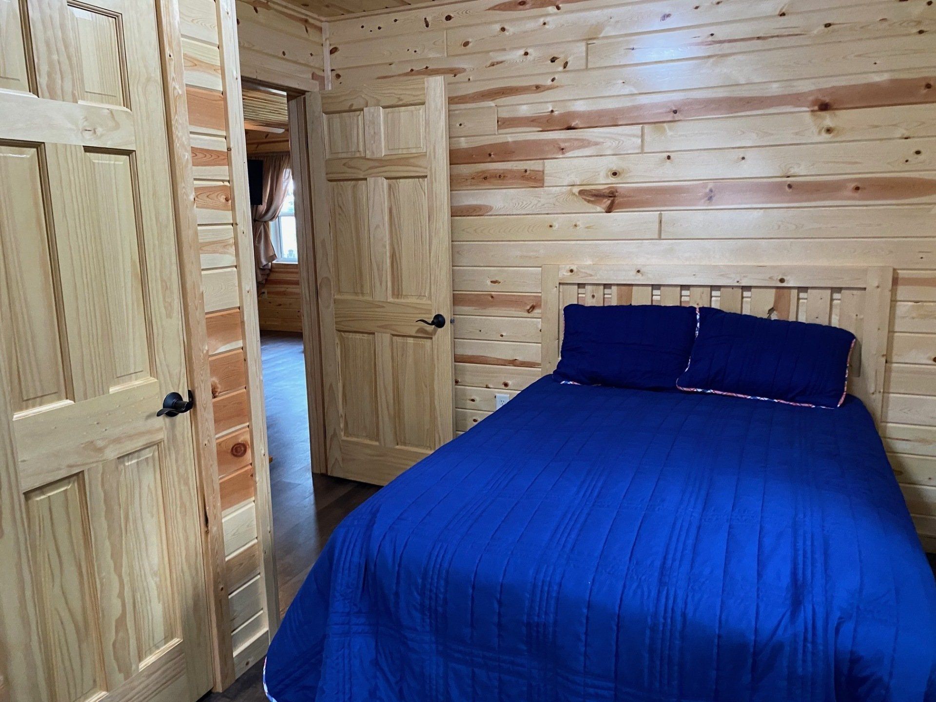This cabin offers a beautiful lake view from the living room, kitchen, full bath and 2 bedrooms.