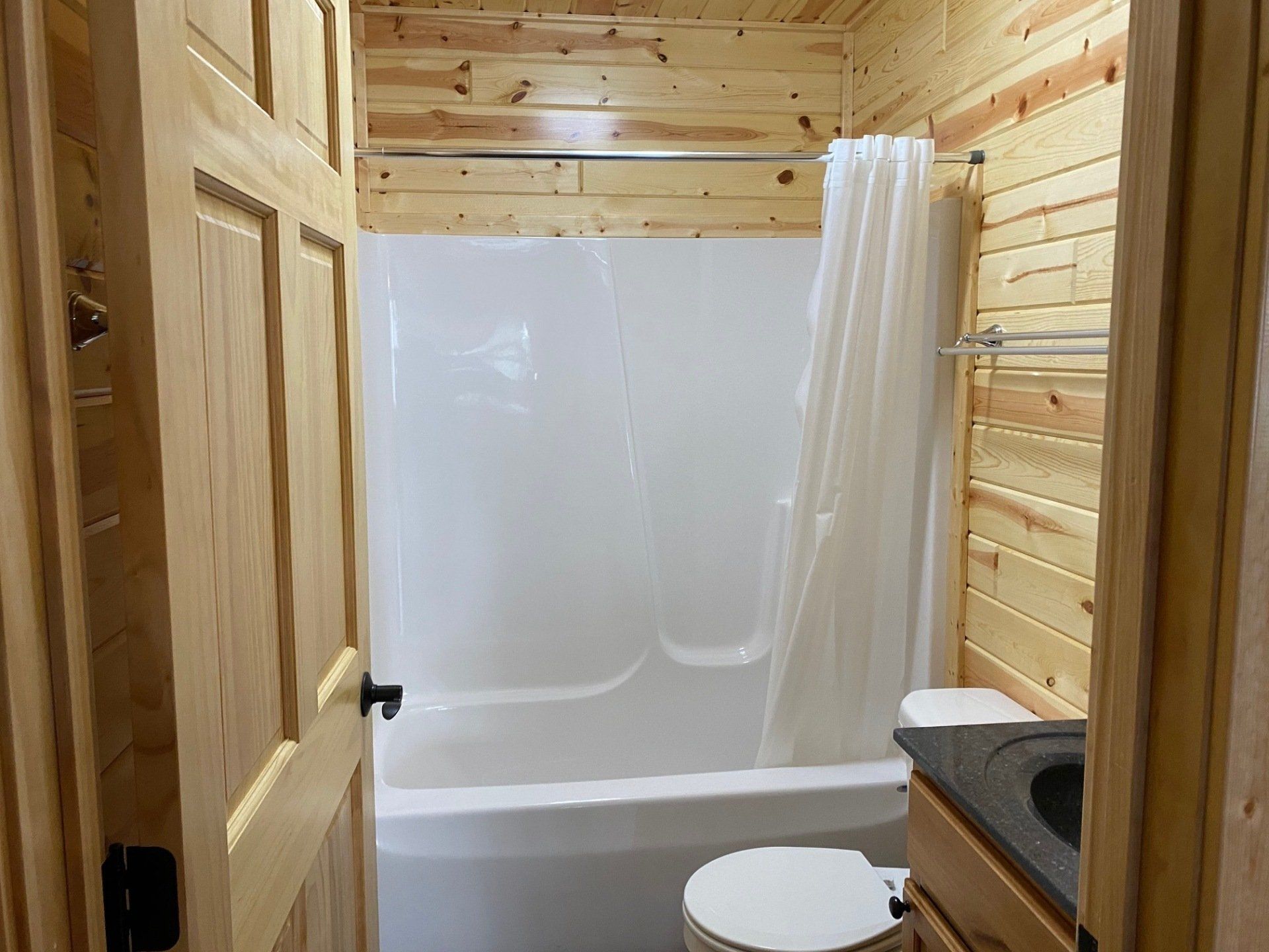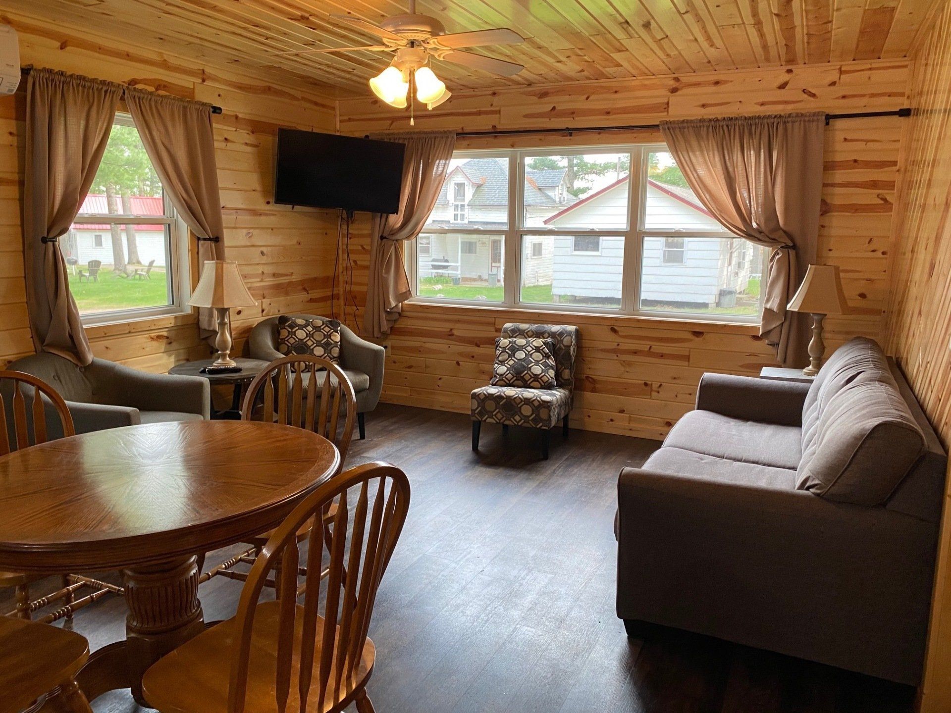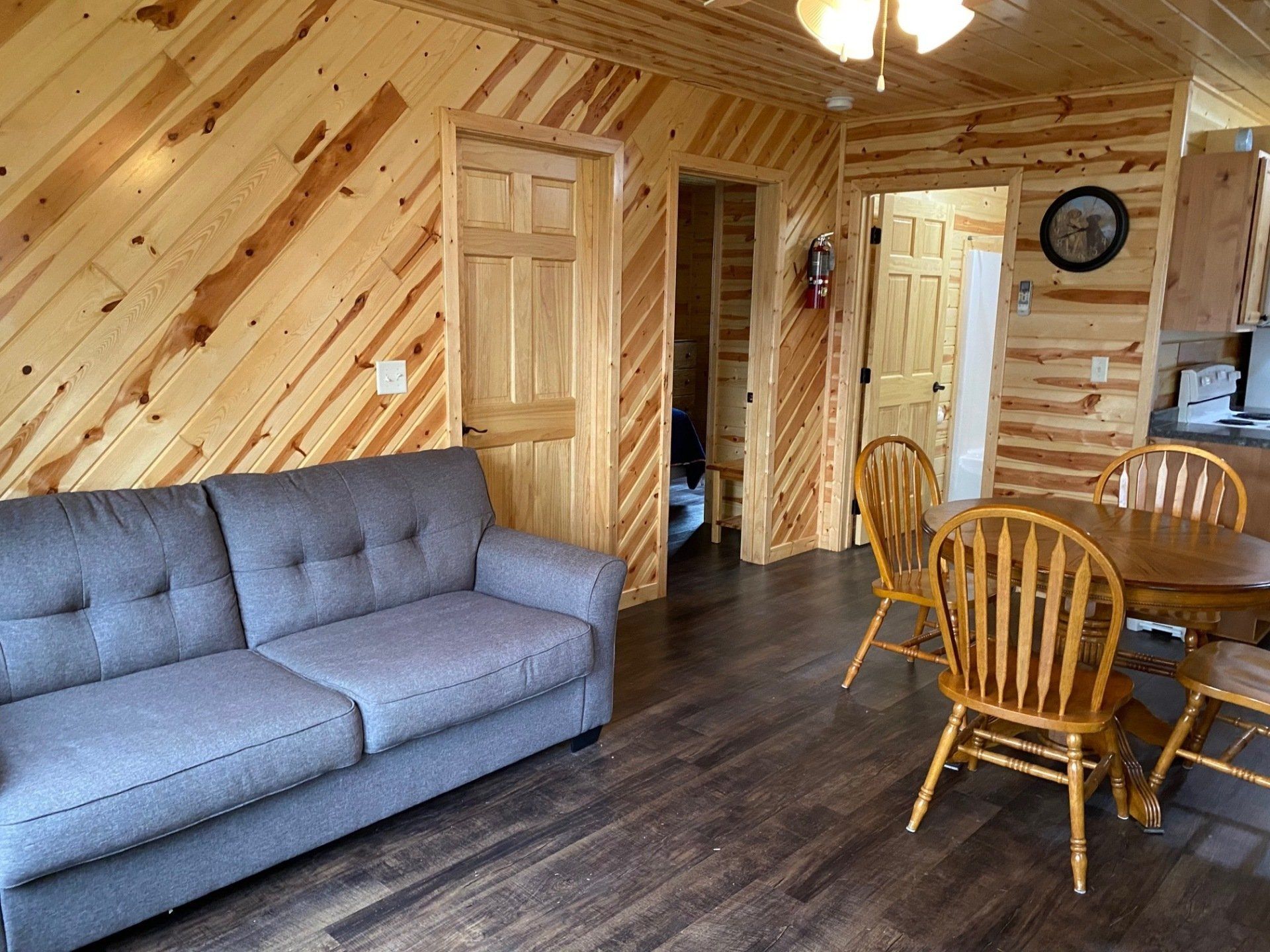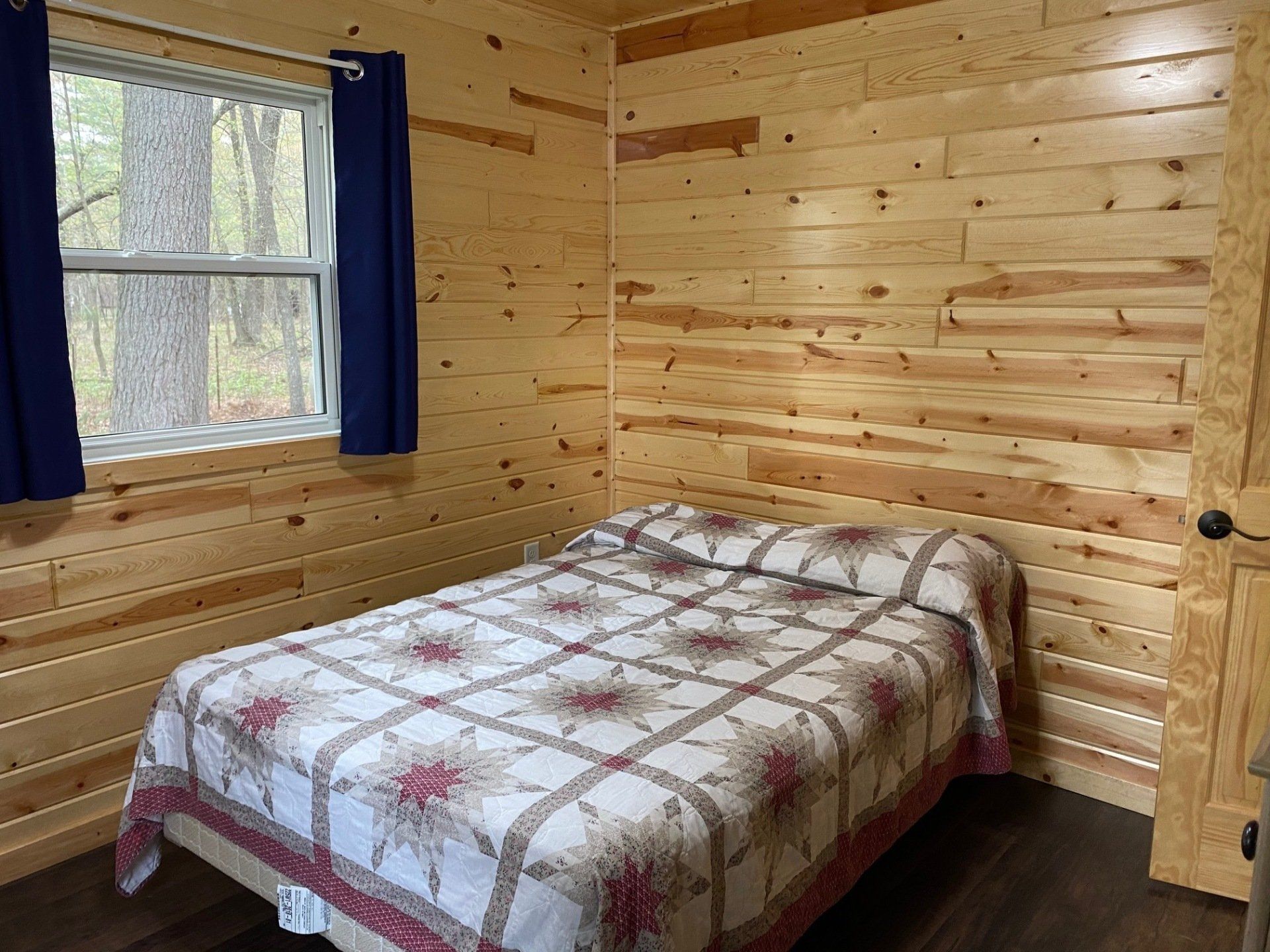 This cabin offers a beautiful lake view from the living room, kitchen, full bath and 2 bedrooms.